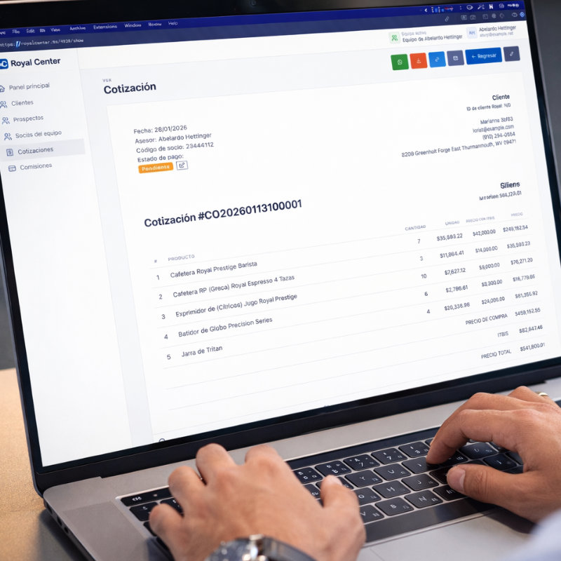 Royal Center te da el control total de tu operación comercial desde un solo lugar. Visualiza el estado de tus clientes, prospectos y ventas en tiempo real, mientras tu equipo gestiona todo directamente desde su celular o computadora, de forma simple y eficiente.